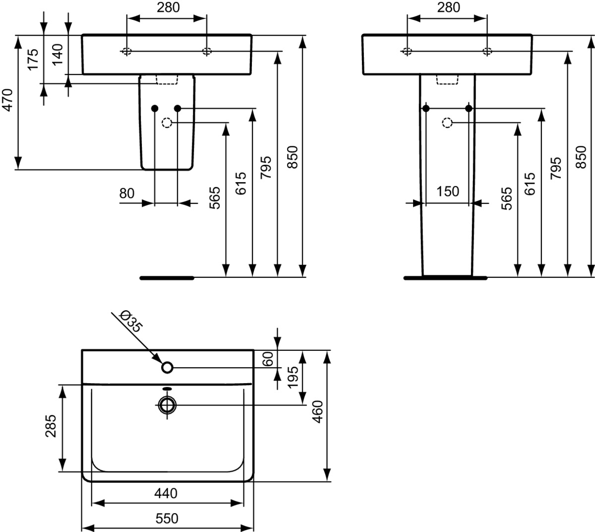 Connect Cube wastafel 550x460mm met kraangat+overloop wit Ideal Standard