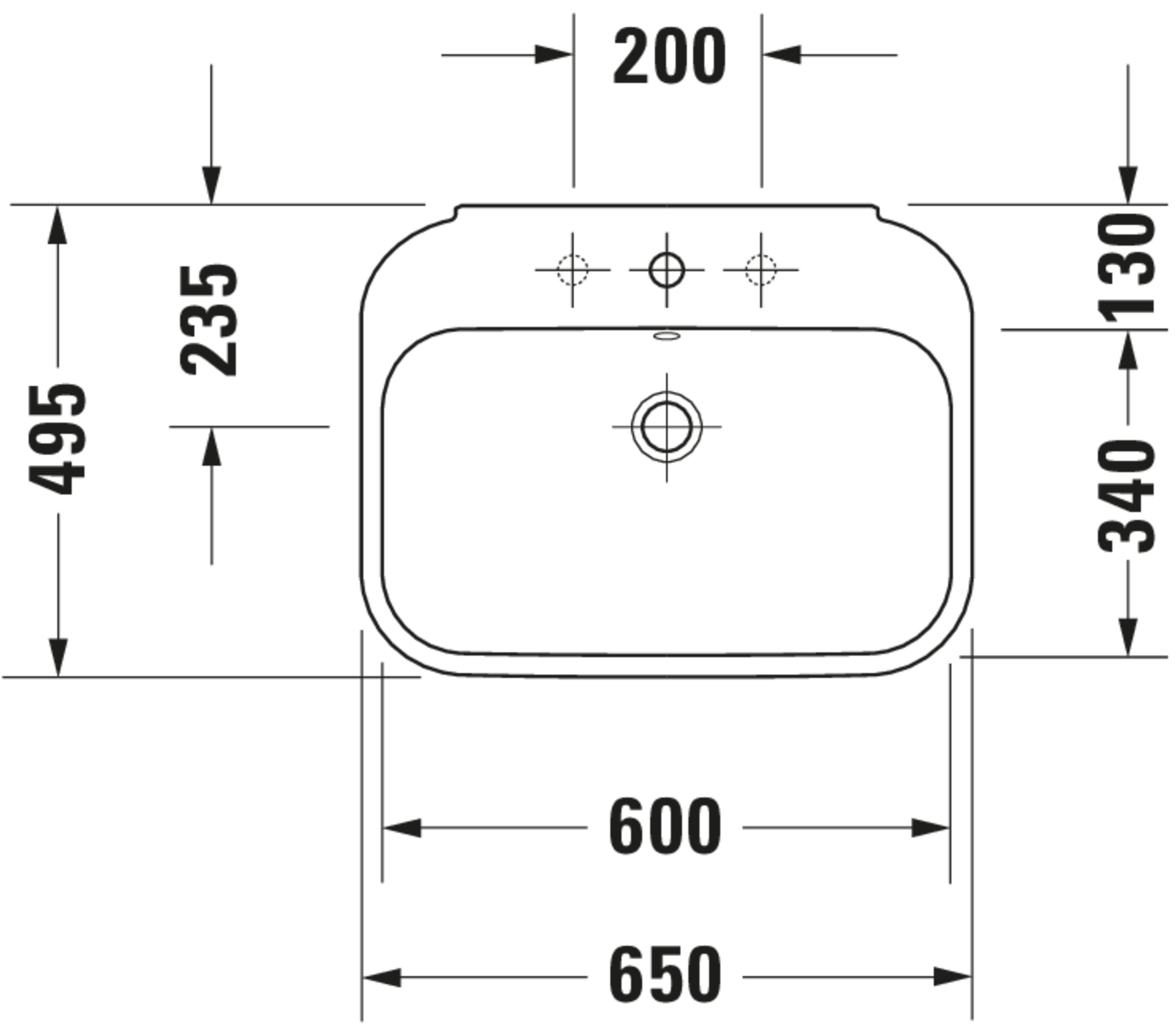 HAPPY D.2 #231665 wastafel 650mm wit met kraangat met overloop Duravit