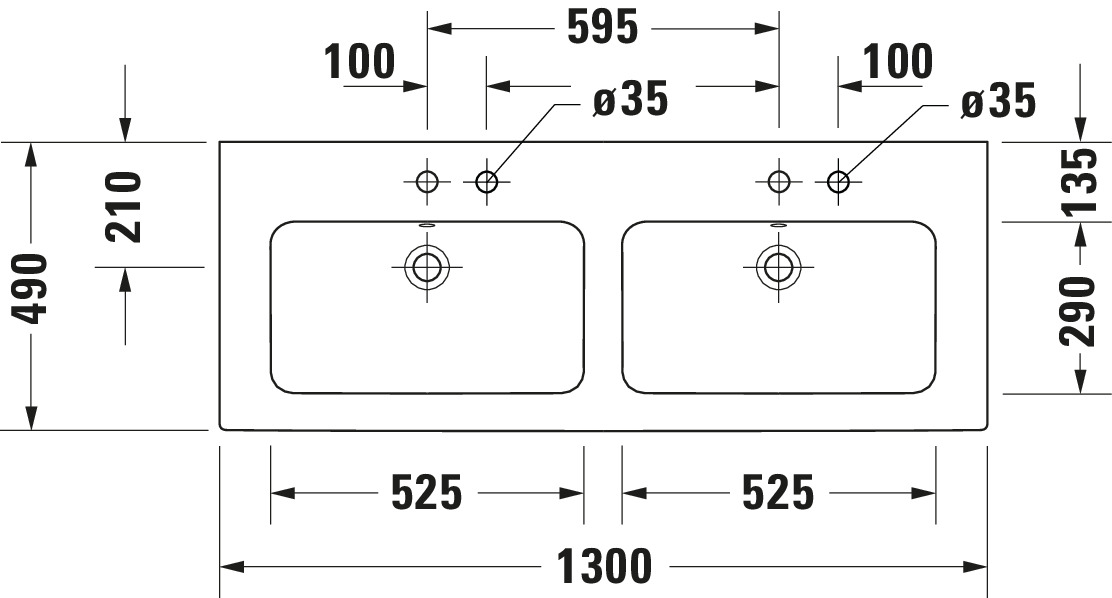 ME BY STARCK #233613 dubbele wastafel 1300mm wit kraangaten per wasbak: 1 met overloop Duravit
