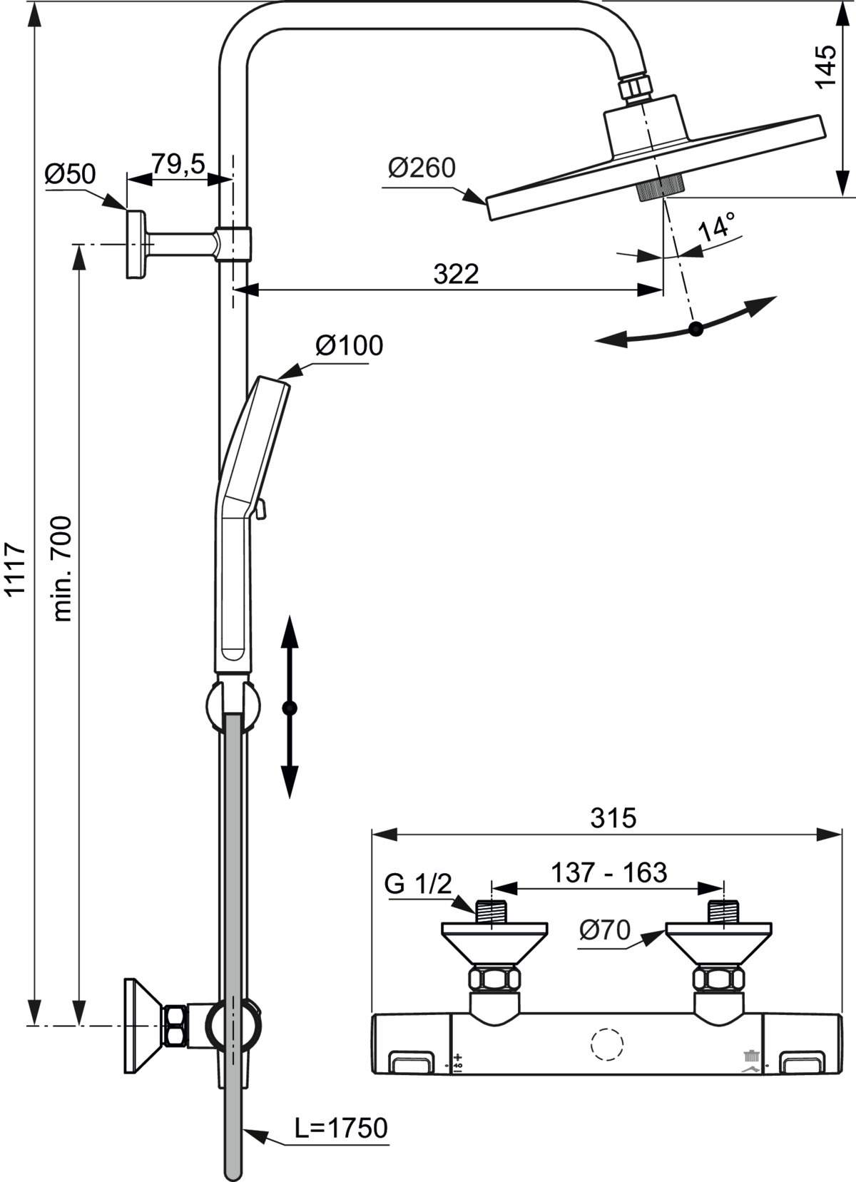 Douchesysteem eco m. douchethermostaat chroom Ceratherm T25+ Ideal Standard