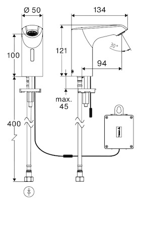 Wastafelmengkraan elektronisch XERIS E² HD-K small koud water batterijvoeding chroom. Schell
