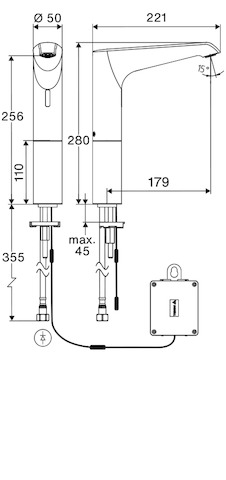 - Opbouwhoogte onderkant kraanmondstuk: 250 mm