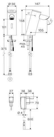 Wastafelmengkraan elektronisch PURIS E² HD-K koudwater stekkertrafo 230V chroom Schell