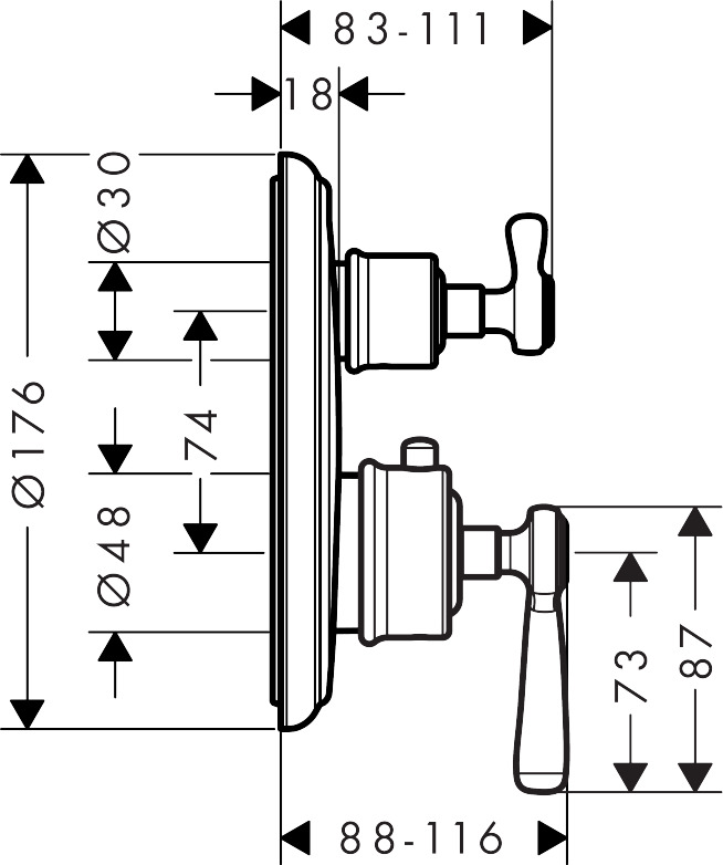 Afbouwdeel AXOR Montreux inbouw thermostaat+stopkraan chroom hansgrohe