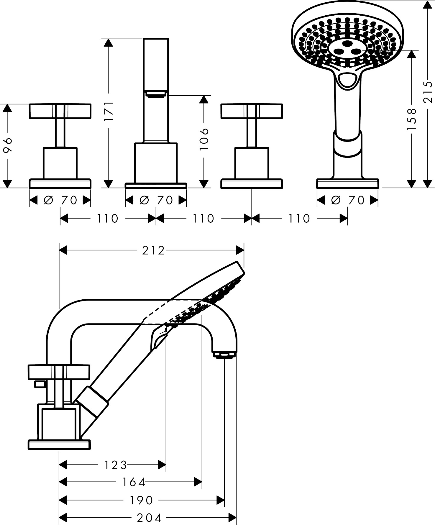 Afbouwdeel AXOR Citterio 4-gats badrandmengkraan met kruisgrepen chroom hansgrohe