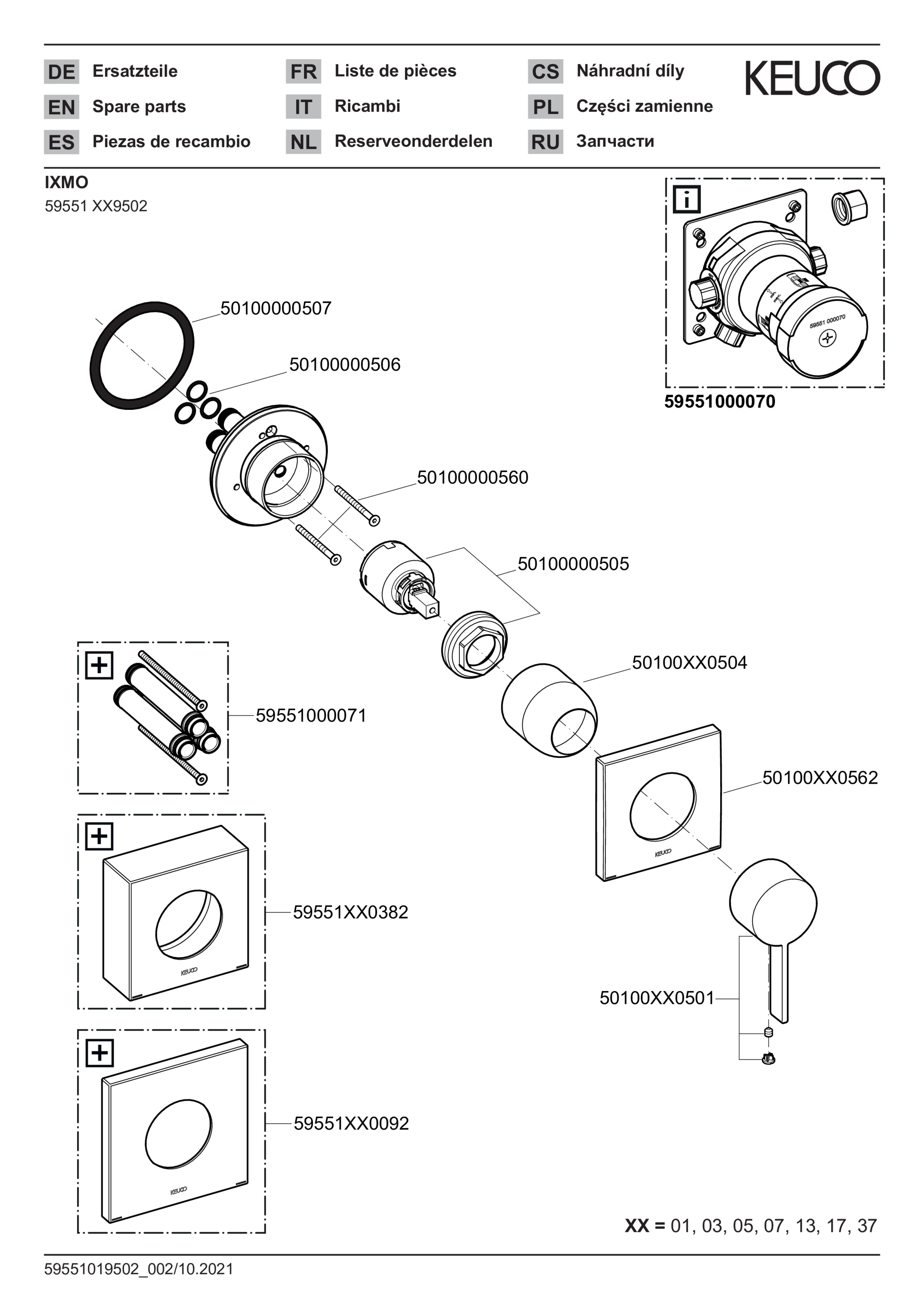 1-hendel mengkraan inbouw met hoekige rozet 59551019502 KEUCO