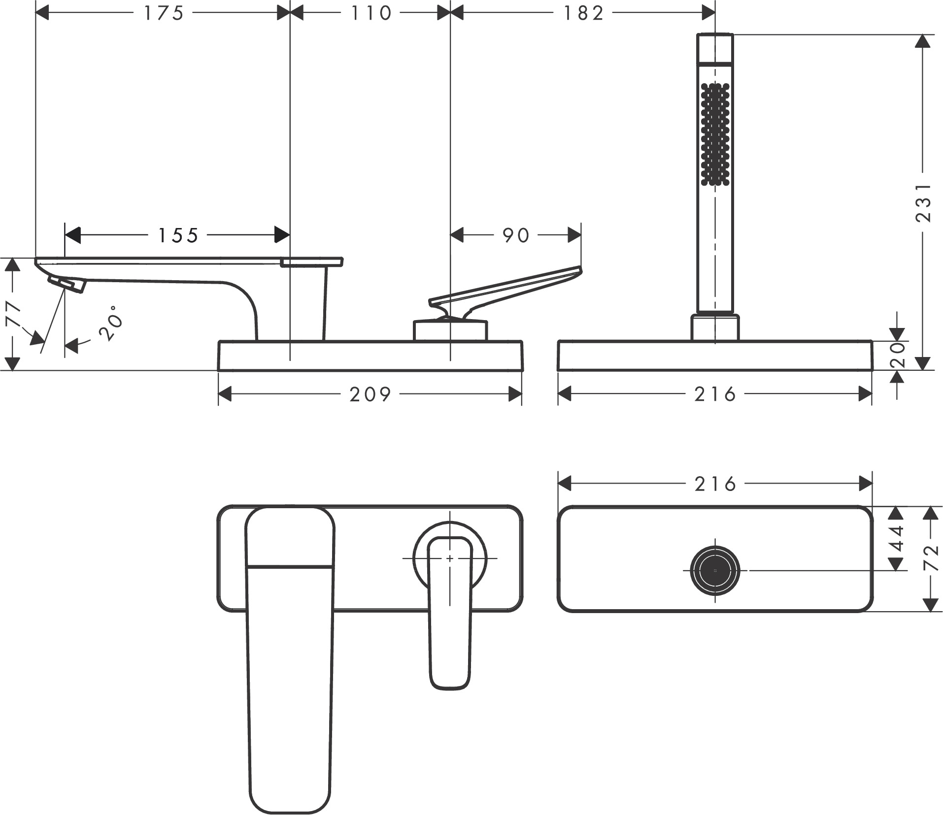 Afbouwdeel 3-gats 1-hendel badrandkraan sBox brushed bronze Citterio-C hansgrohe