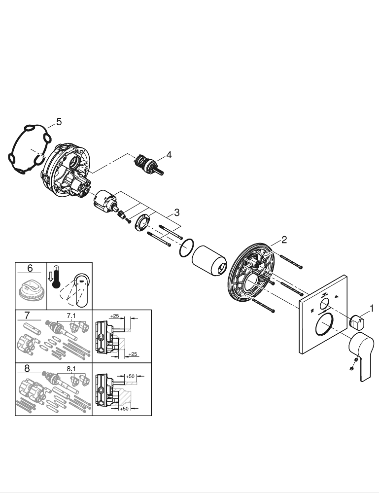 Afbouwdeel 3-Weg hard graphite geborsteld (mat donker grijs) Allure (Spa) Grohe