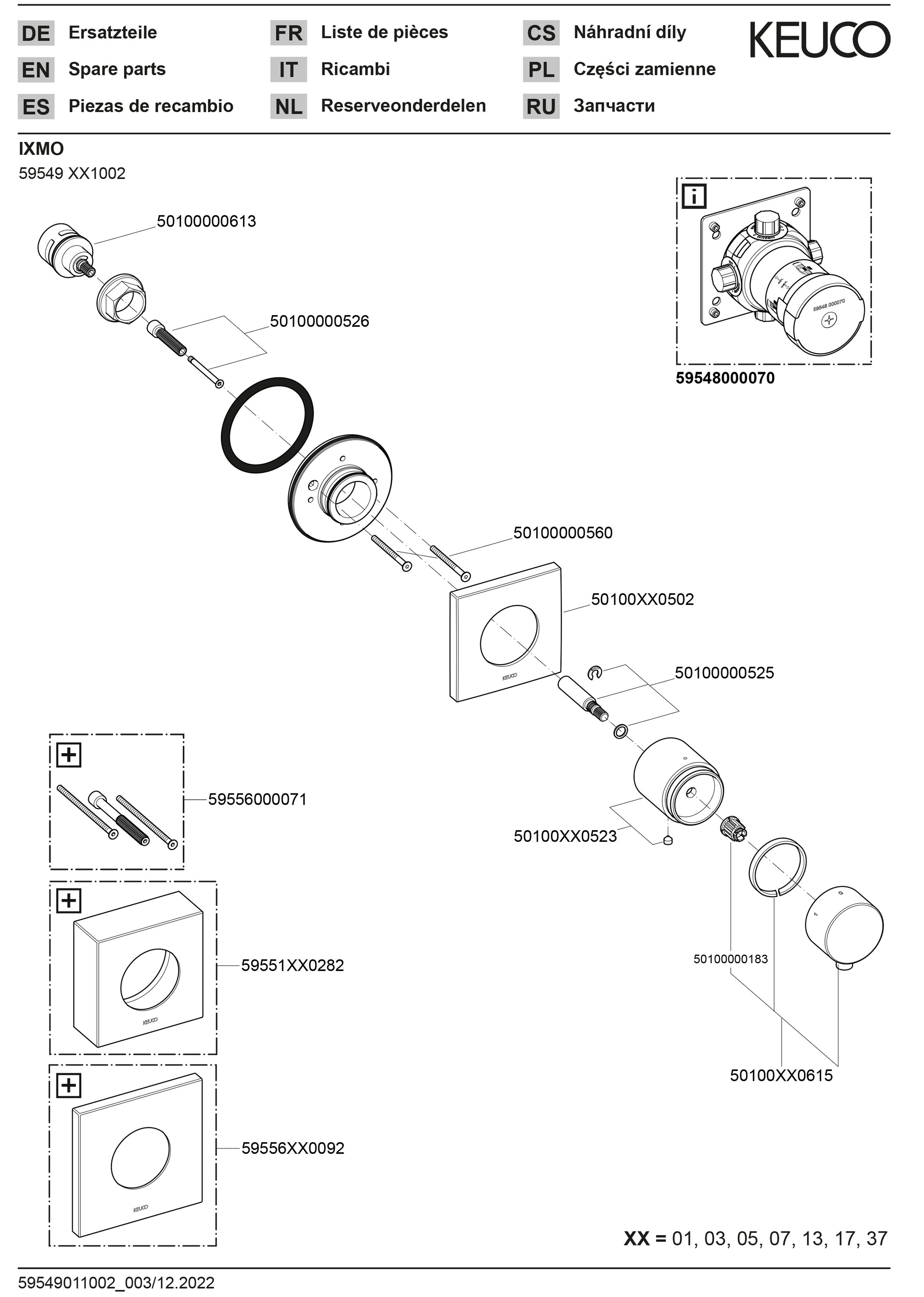 3-Weg stop-en omstelkr UP IXMO Comfort/vierkant roestvrij st KEUCO