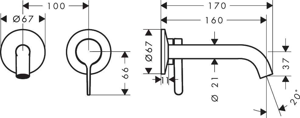 Wastafelmengkraan AXOR One wand inb. rechte greep 160mm Brushed Black Chrome hansgrohe