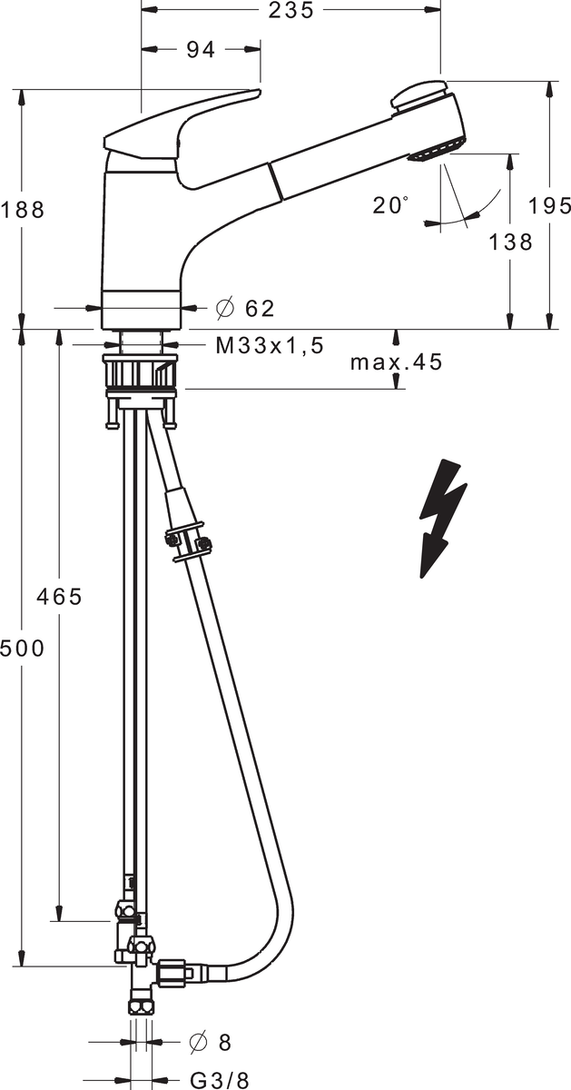 - Uittrekbare uitloop met kraanbeluchter/mousseur: Ja