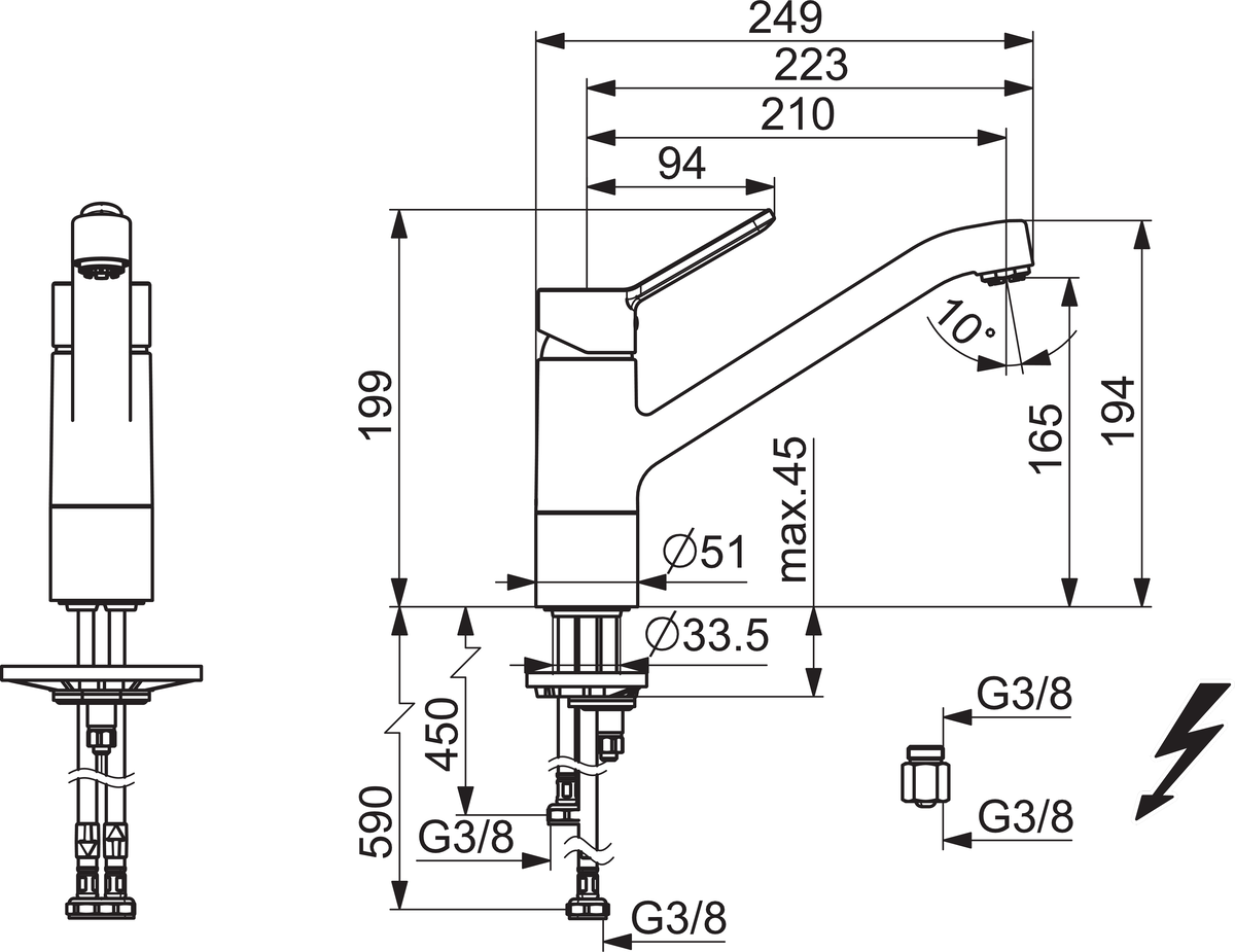 - Terugstroombeveiliging conform EN 1717: AA, vrije luchtopening