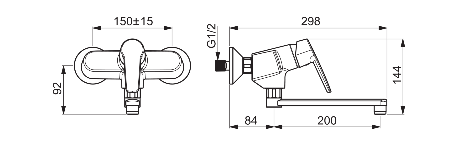 - Hartafstand: 150 mm