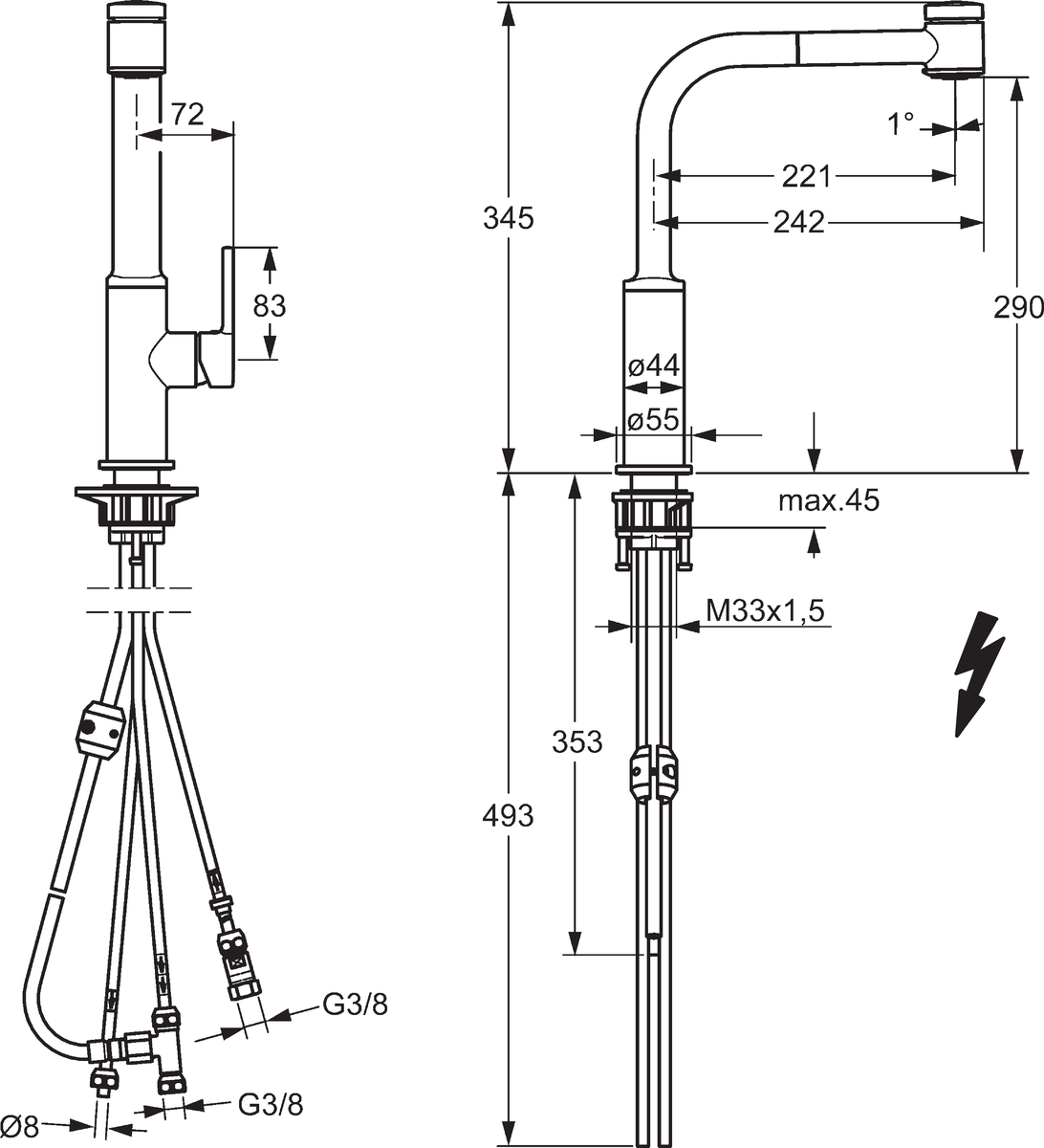 - Uittrekbare uitloop met kraanbeluchter/mousseur: Ja