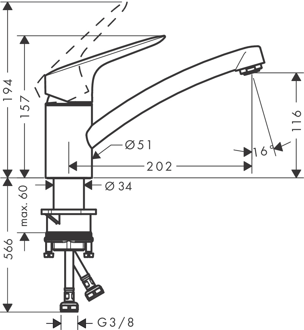 - Opbouwhoogte onderkant kraanmondstuk: 120 mm