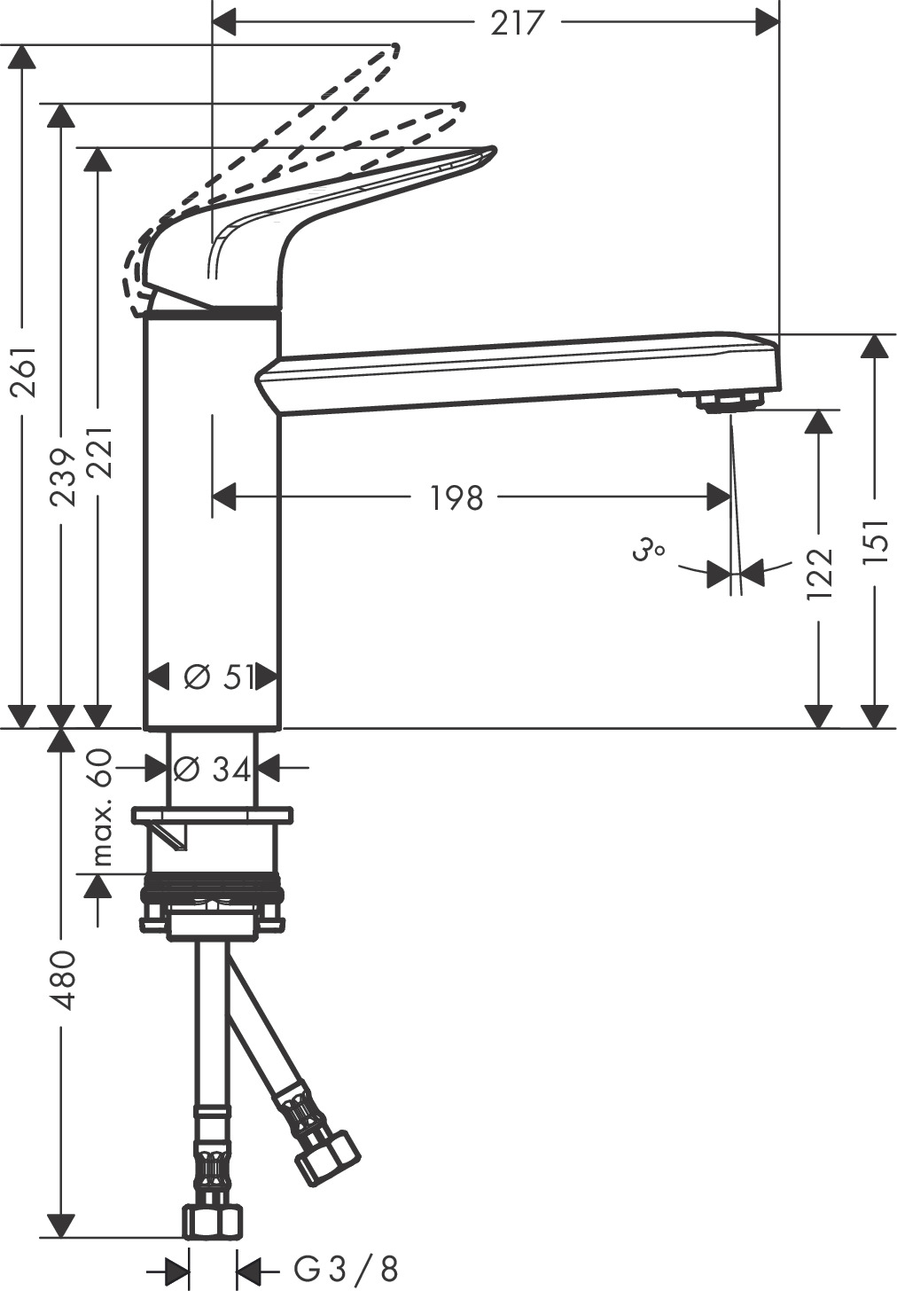 - Opbouwhoogte onderkant kraanmondstuk: 120 mm