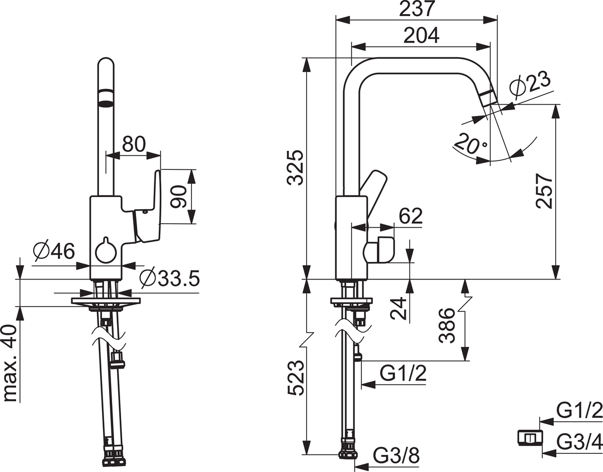keukenmengkraan uitl 203mm 120gr flex aansluitsl 3/8" HANSAPOLO HANSA