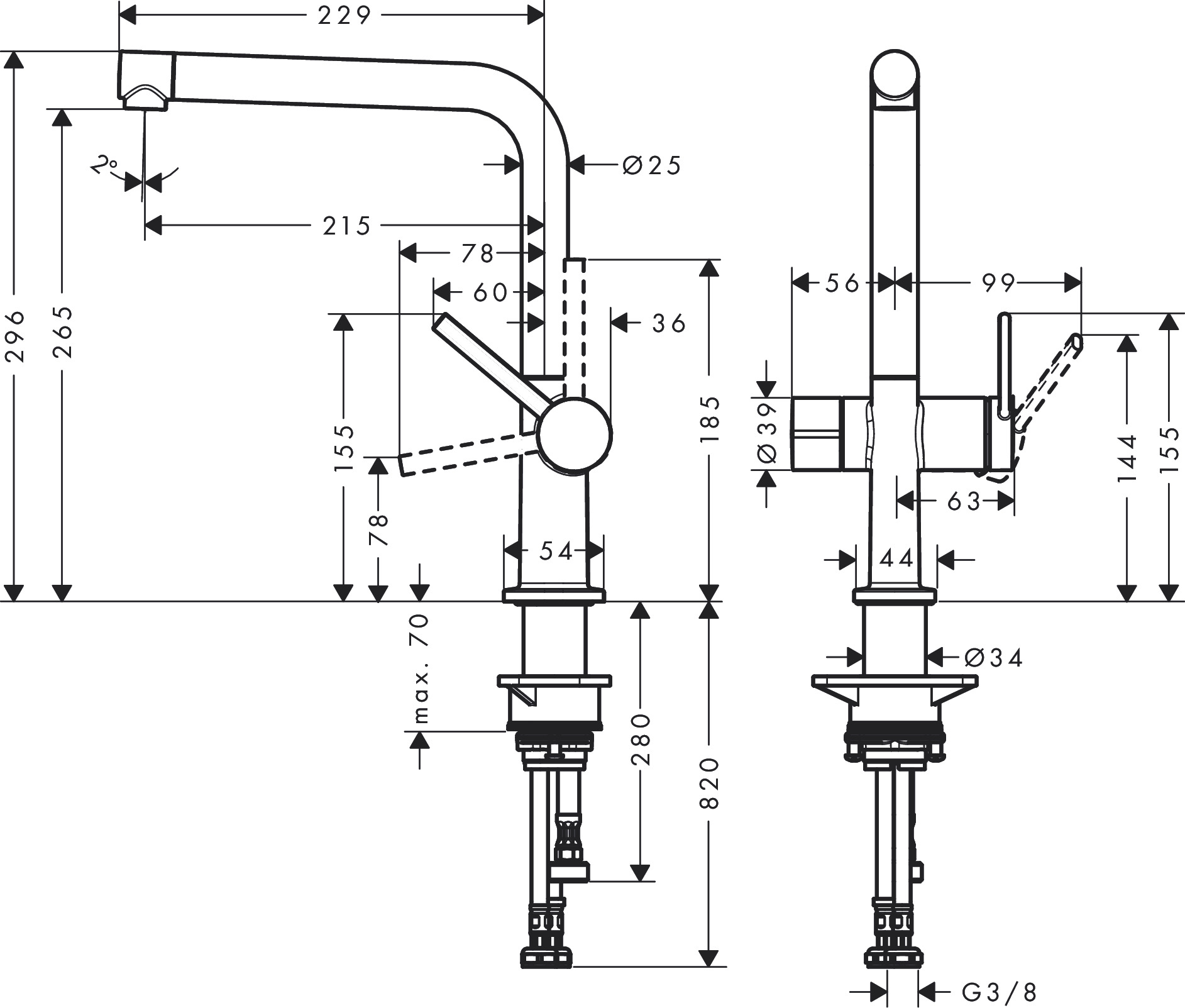 Talis M54 1-gr keukenkraan 270 stopkraan vaatwasser mat zwart hansgrohe