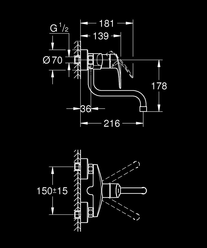 - Opbouwhoogte onderkant kraanmondstuk: 178 mm