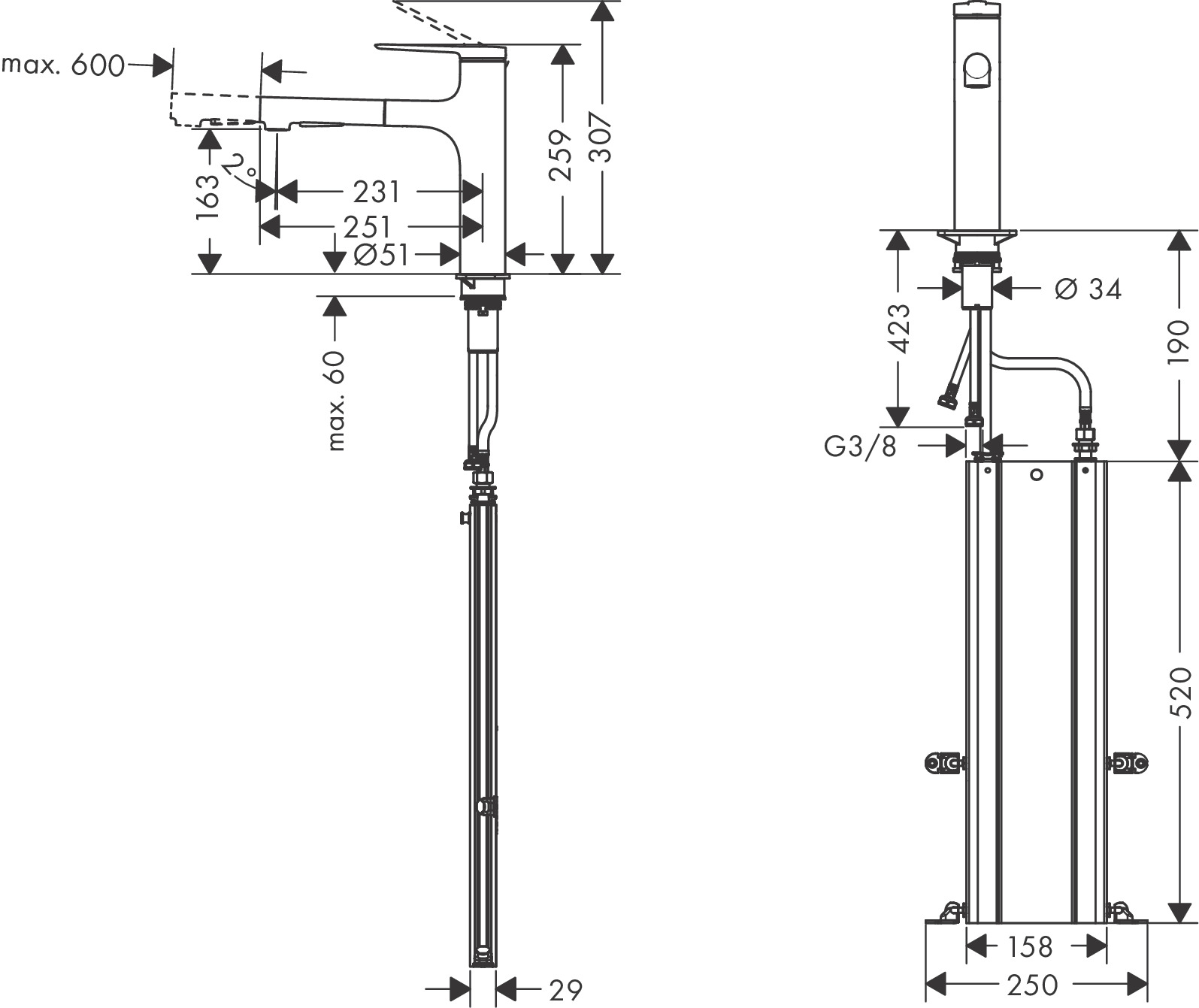 - Opbouwhoogte onderkant kraanmondstuk: 160 mm