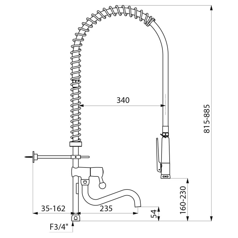 - Opbouwhoogte onderkant kraanmondstuk: 54 mm