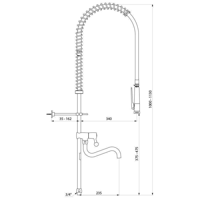 - Opbouwhoogte onderkant kraanmondstuk: 375 mm