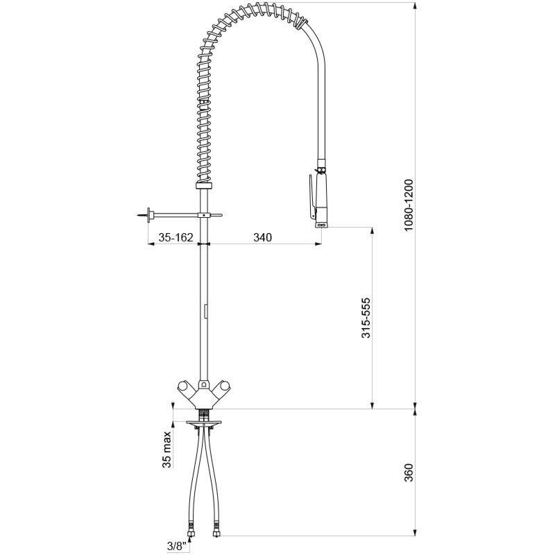 - Voorsprong vaatdouche: 340 mm