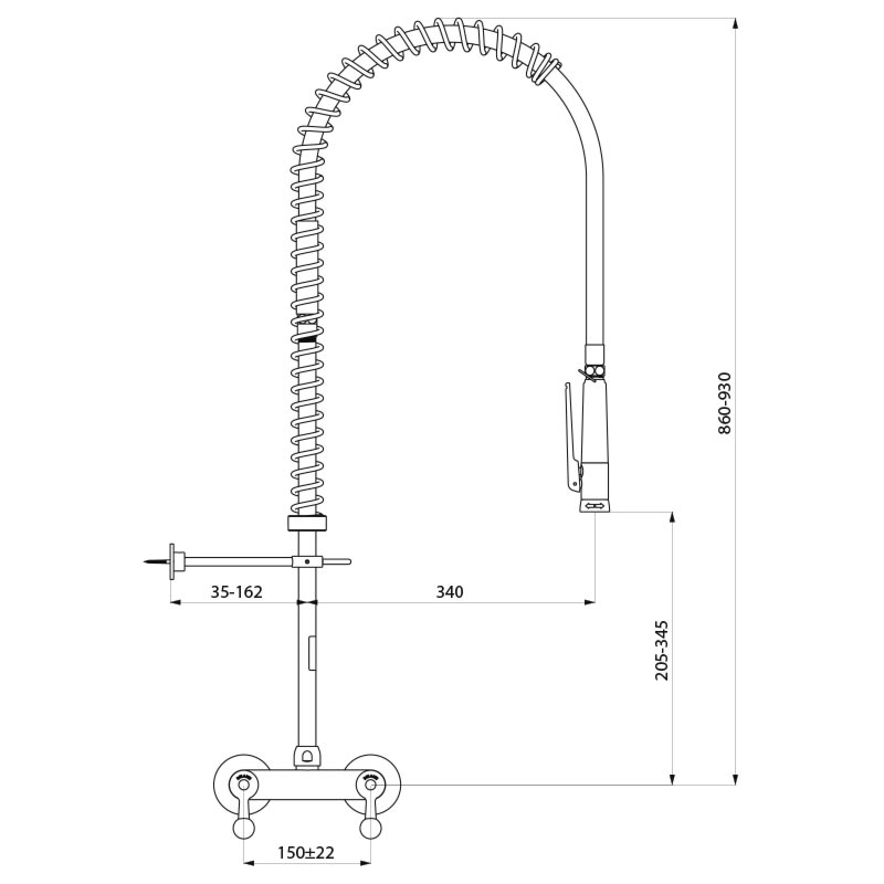 - Opbouwhoogte onderkant kraanmondstuk: 205 mm