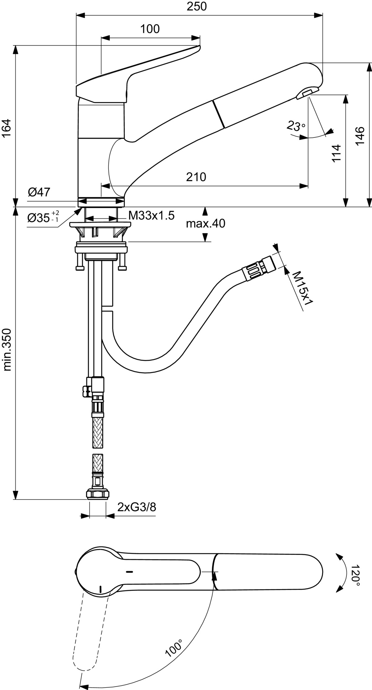 Keukenmengkraan laag m. uittrek handdouche Bluestart chroom Ceraflex Ideal Standard