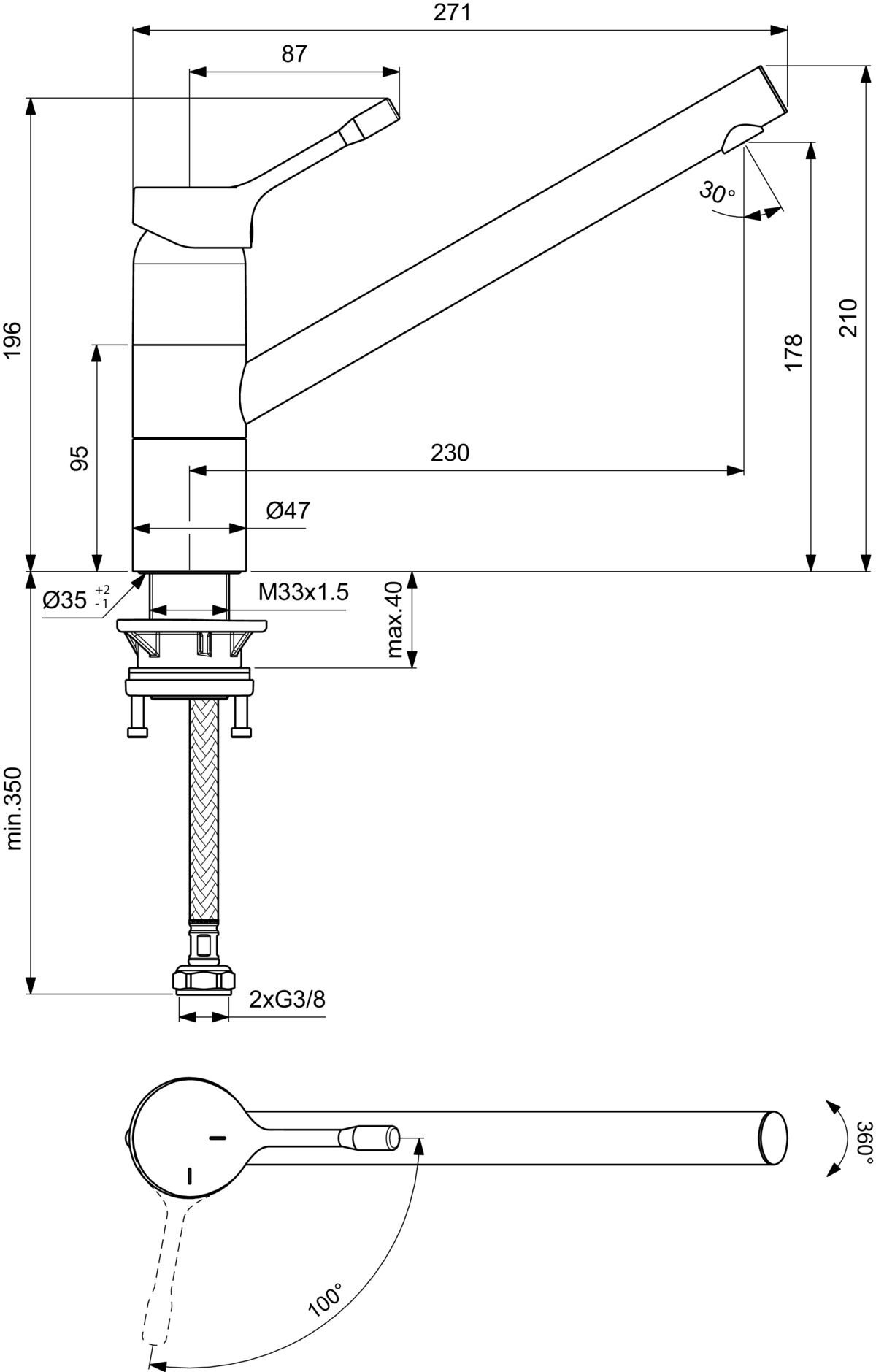 - Opbouwhoogte onderkant kraanmondstuk: 178 mm
