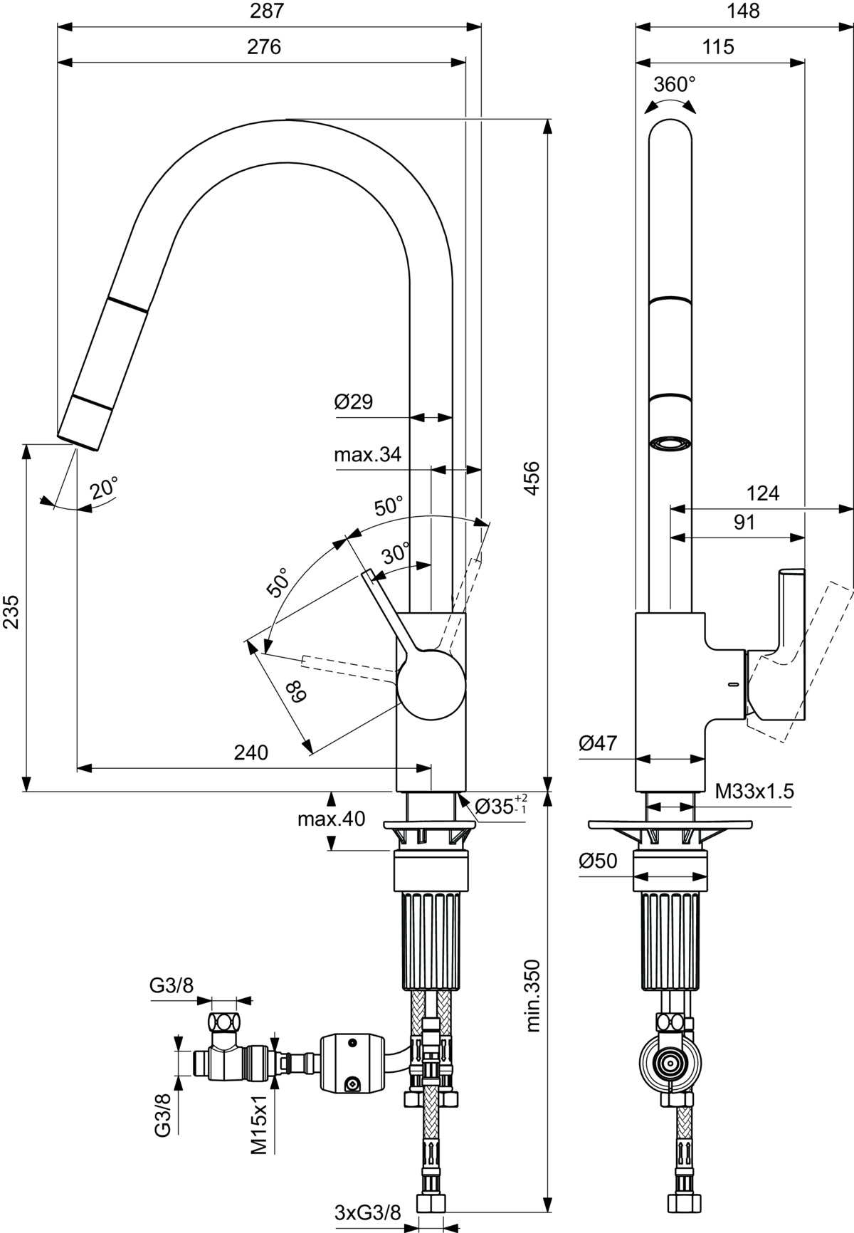 - Opbouwhoogte onderkant kraanmondstuk: 235 mm