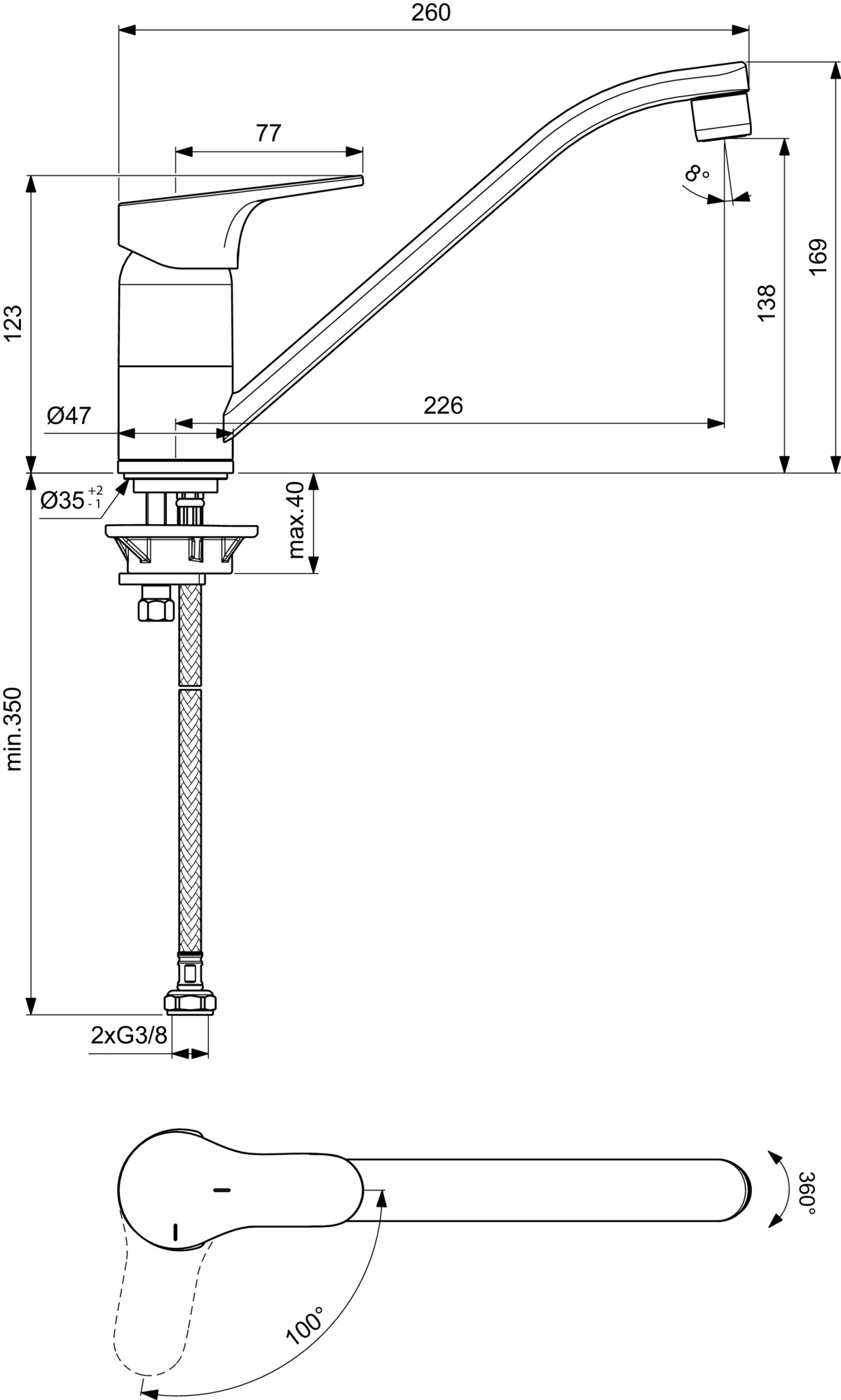 - Opbouwhoogte onderkant kraanmondstuk: 138 mm