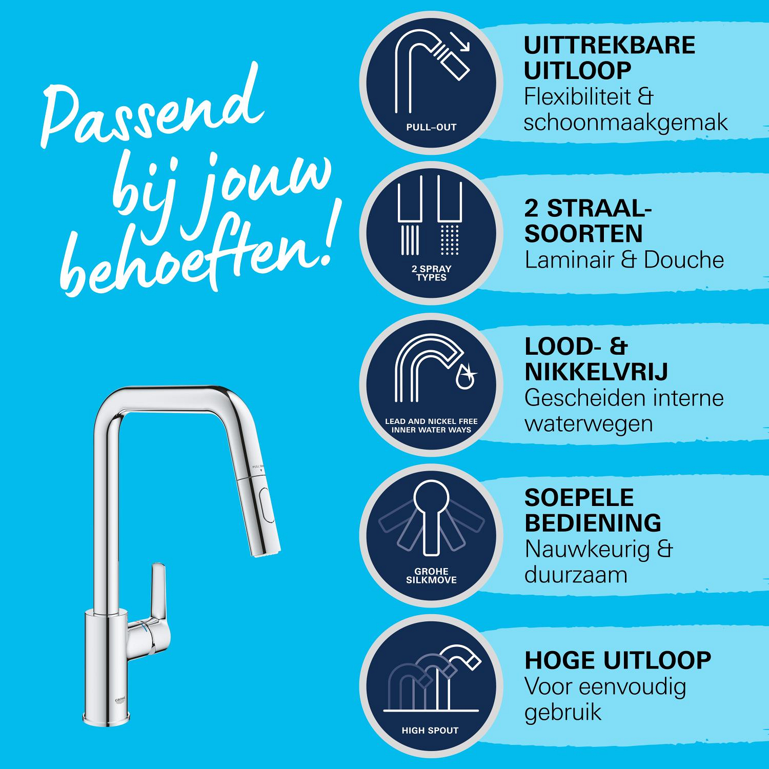 Start Keukenmengkraan U-uitloop Uittrekbare Dual Spray Grohe