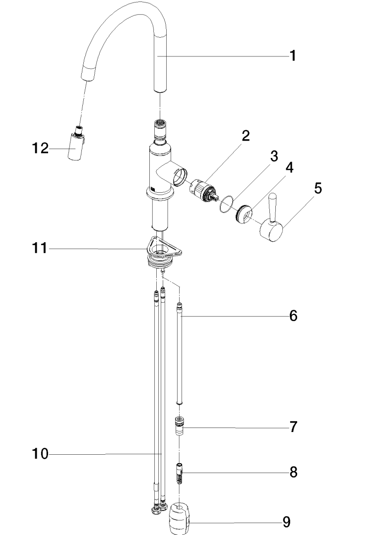 - Benodigde vrije ruimte achter kraan: 10 mm