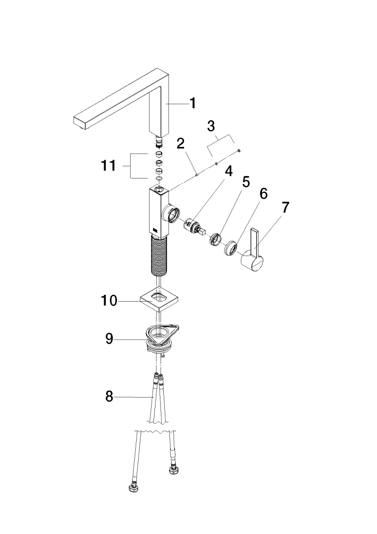 - Benodigde vrije ruimte achter kraan: 10 mm