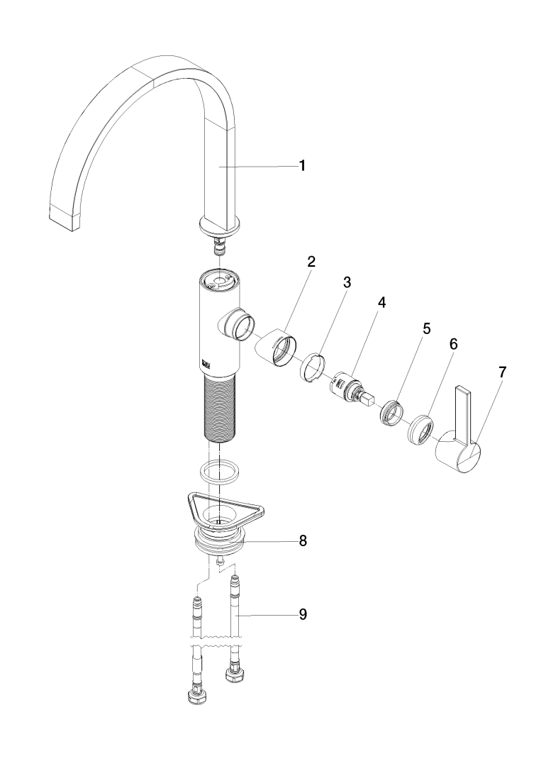 - Benodigde vrije ruimte achter kraan: 10 mm