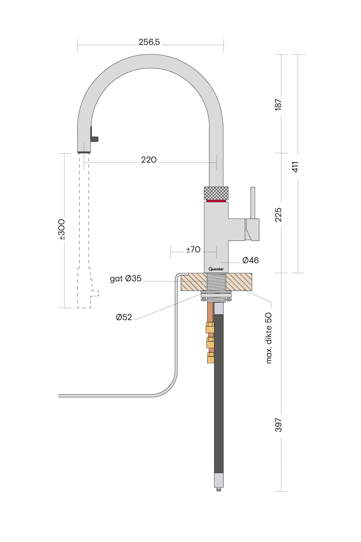 - Opbouwhoogte onderkant kraanmondstuk: 225 mm