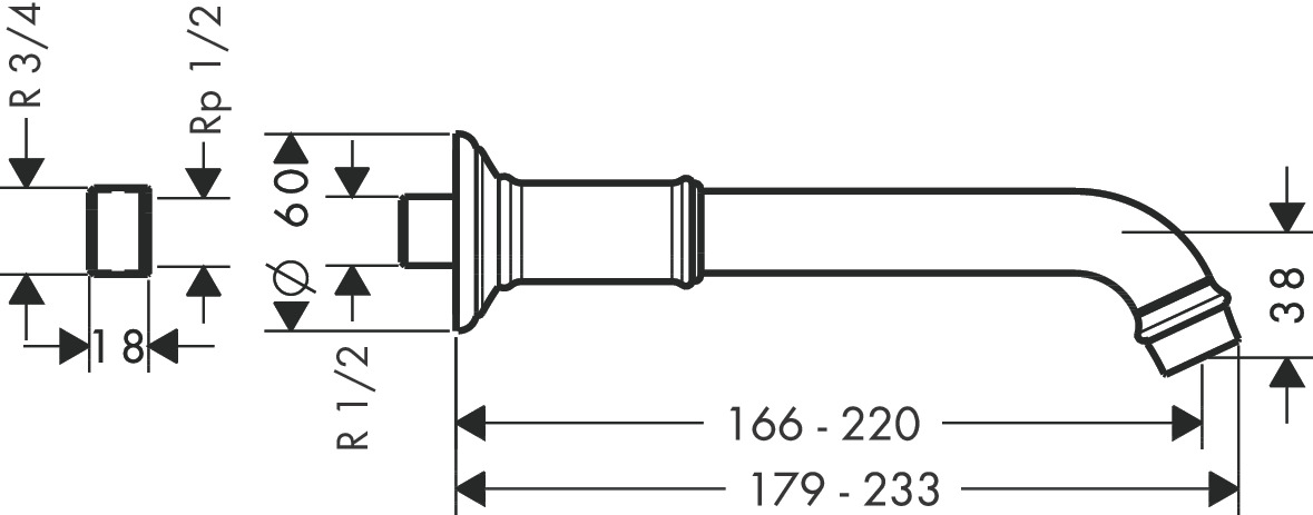 - Opbouwhoogte onderkant kraanmondstuk: 0 mm