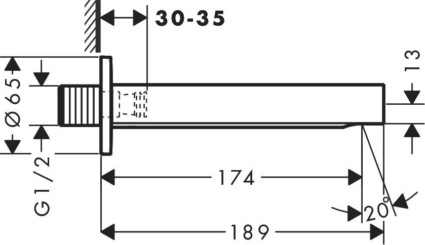 Finoris baduitloop 174mm 1/2" mat zwart hansgrohe