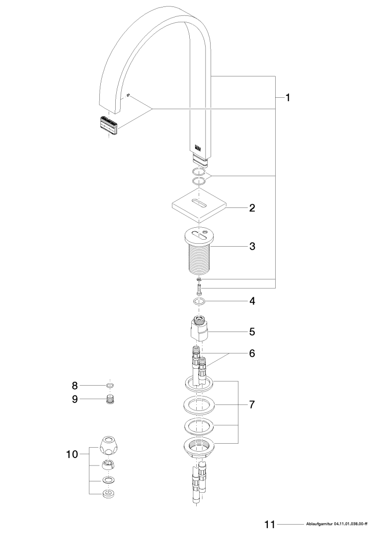 MEM Wastafeluitloop staande montage afvoer.champ.geb Dornbracht