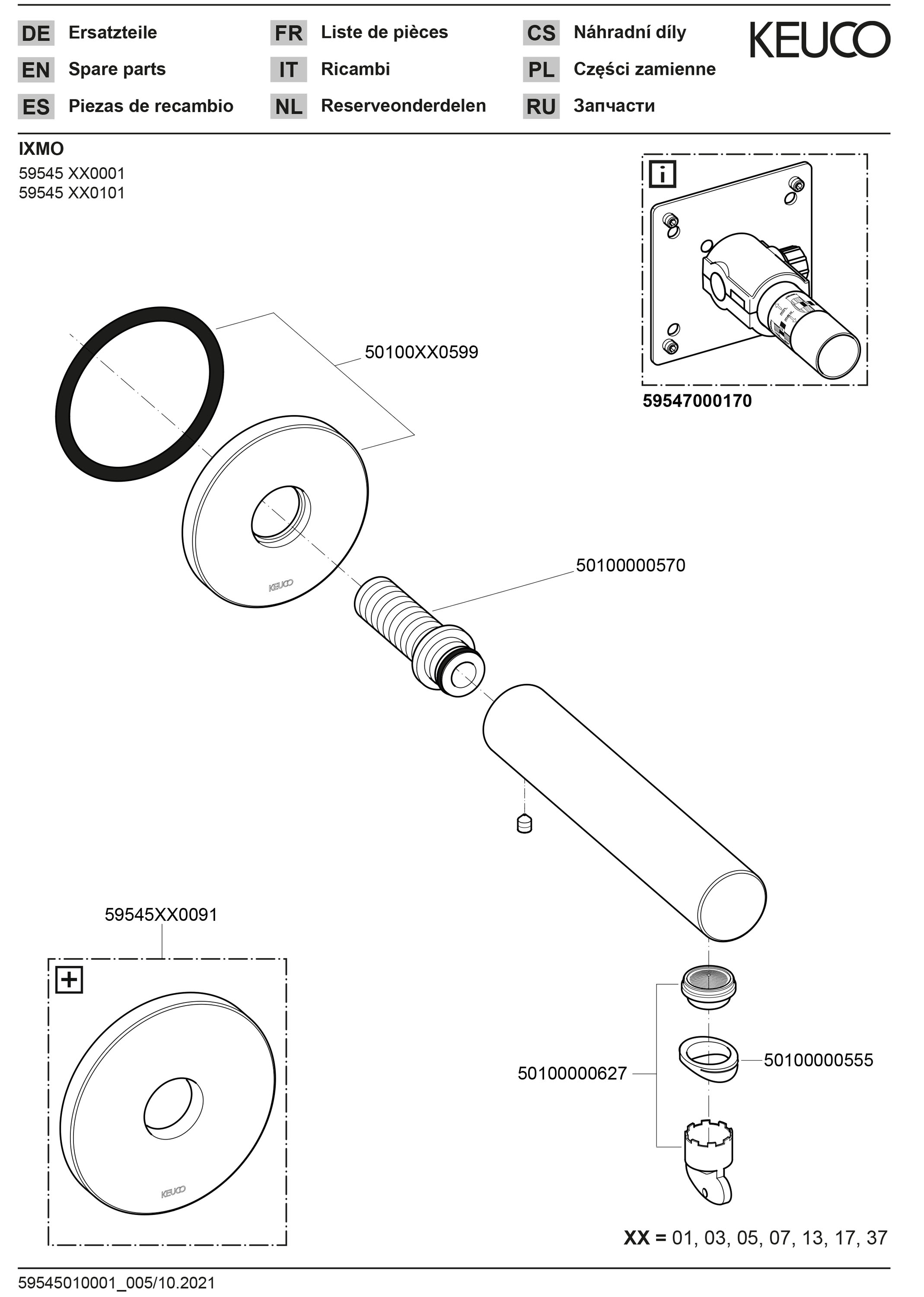 Baduitloop DN15 met rond rozet uitloop 130mm messing gebors KEUCO