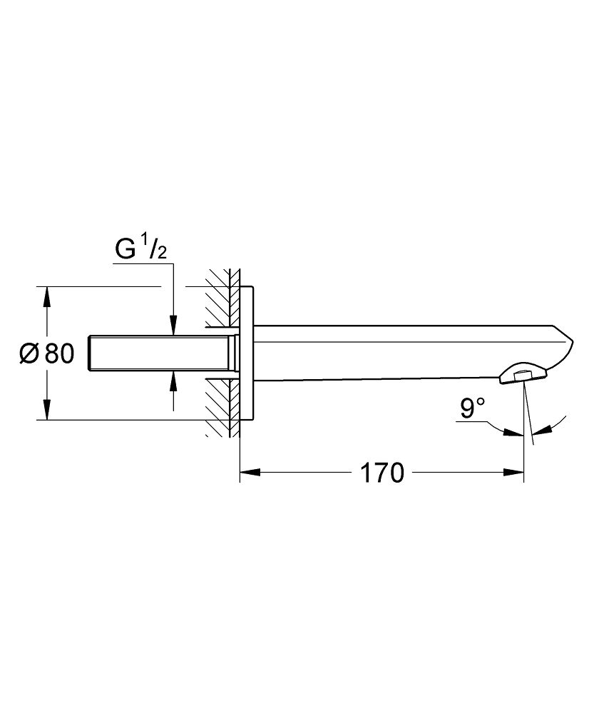 - Opbouwhoogte onderkant kraanmondstuk: 0 mm