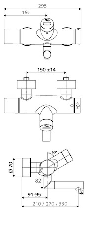 Wandopb.wastafelkraan VITUS VW-E-TIRThermostaate-RLAN270mm Schell