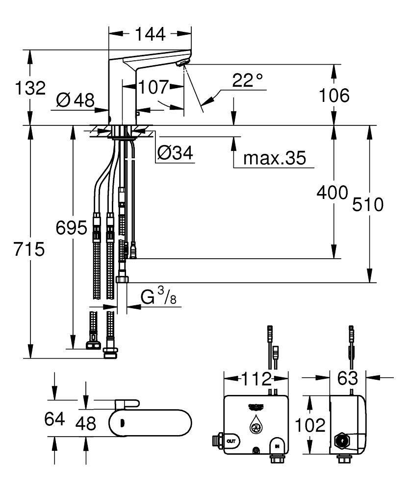 Eurosmart cosmo infrarood wastafelmengkraan chroom incl. powerbox Grohe