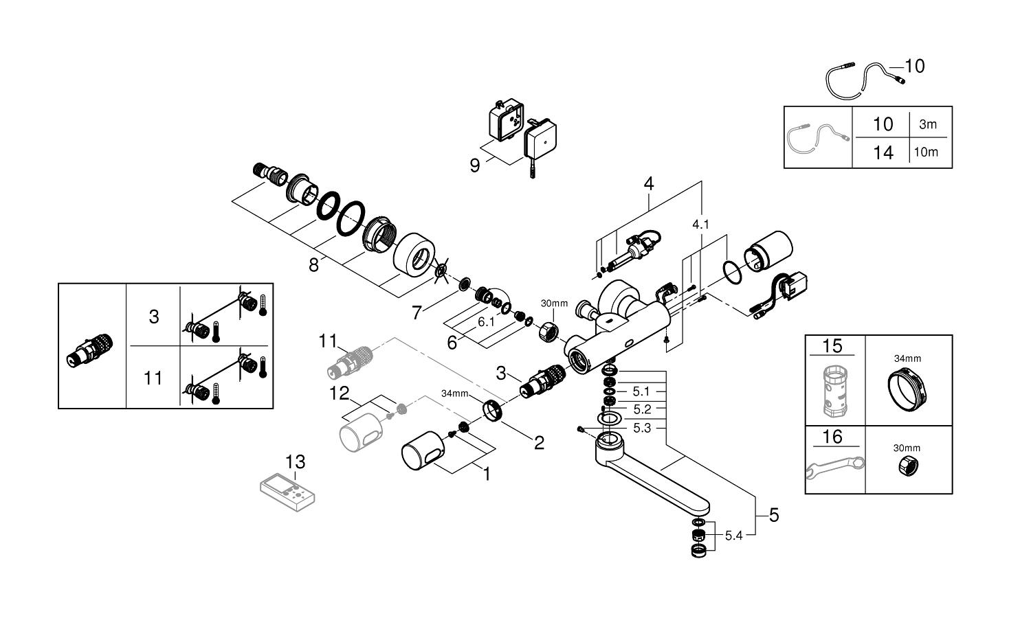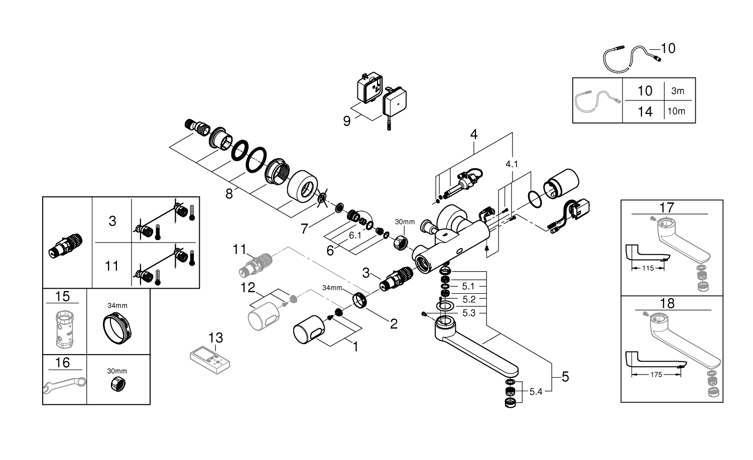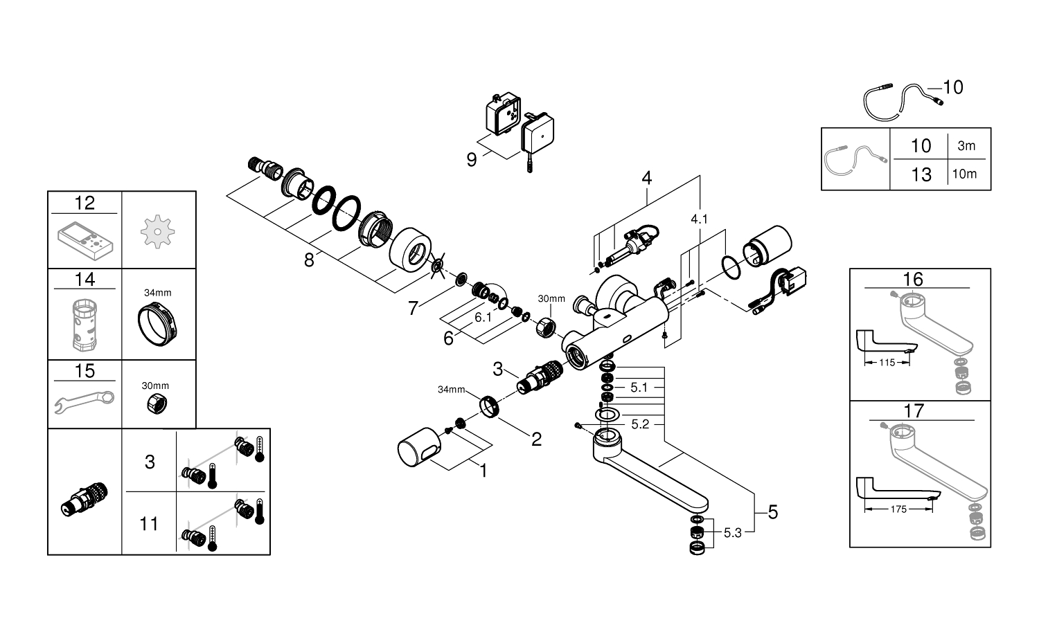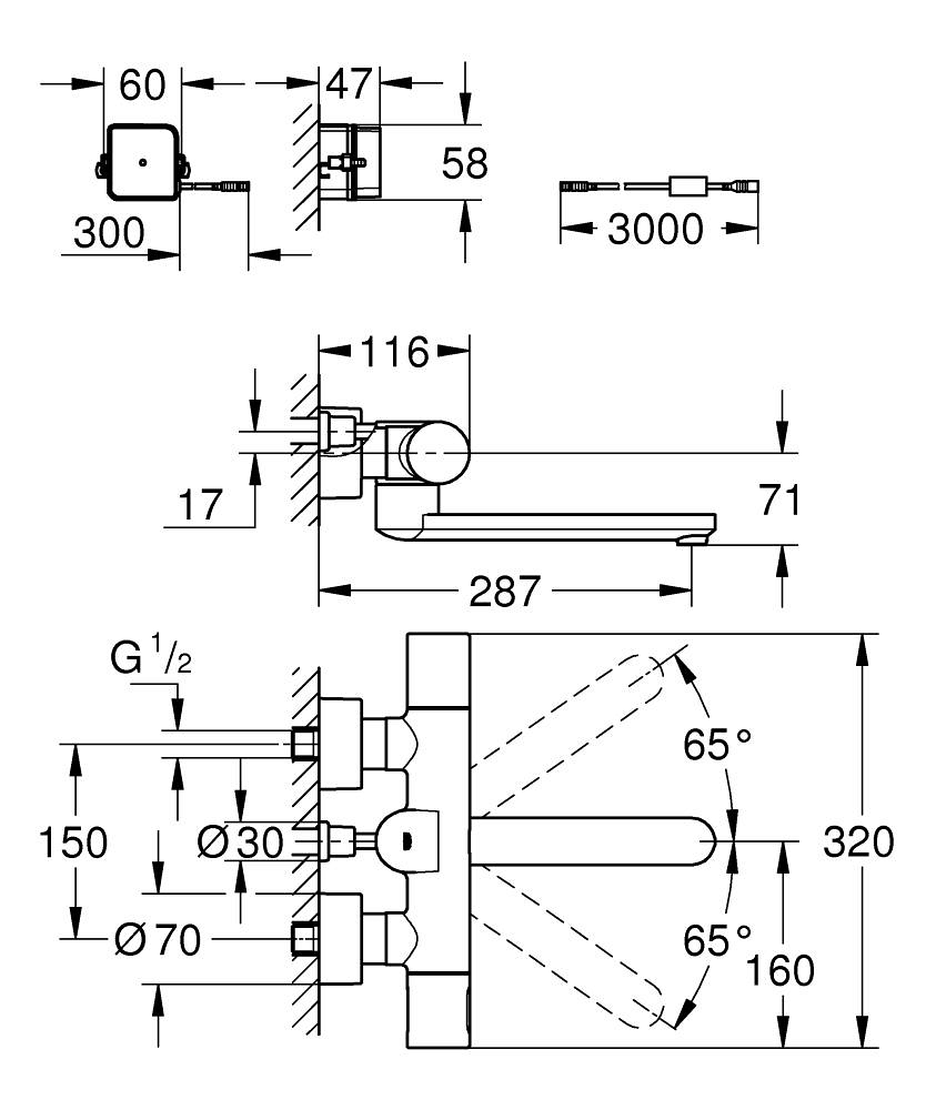 Eurosmart cosmo-E therm wandkraan infrarood sprong 287mm chroom 230V incl. trafo excl. aansluitset Grohe