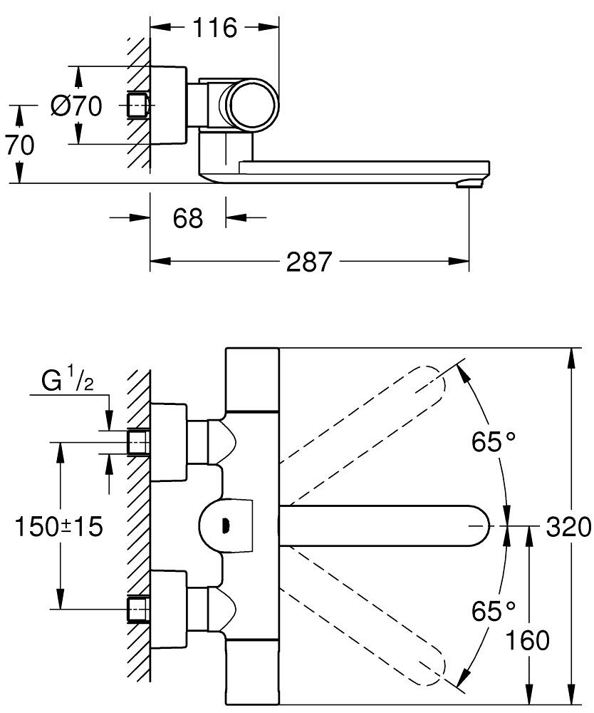 Eurosmart cosmo especial wandmengkraan therm projectie 287mm Grohe