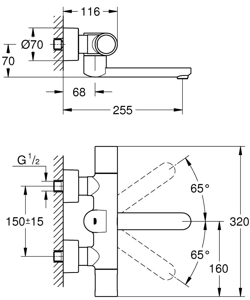 Eurosmart cosmo especial wandmengkraan therm projectie 255mm Grohe
