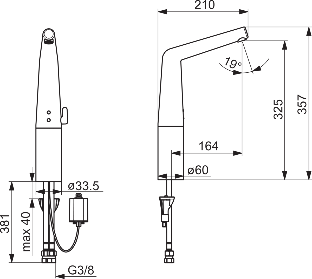 - Maat aansluiting aanvoer: 3/8" (10)