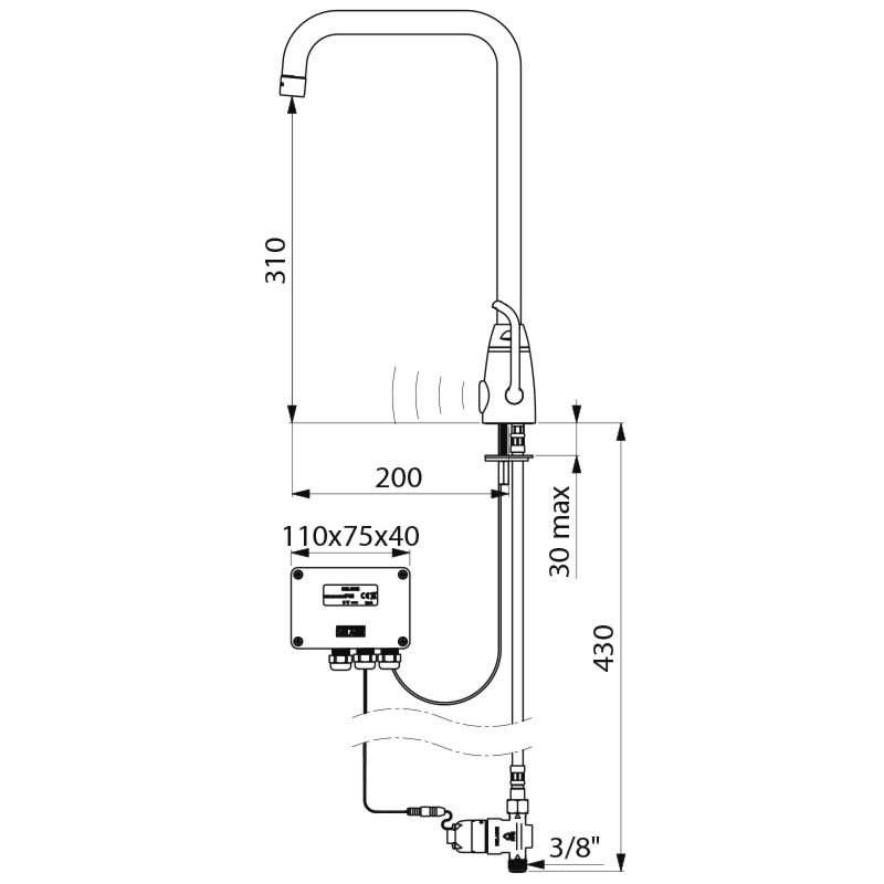 - Opbouwhoogte onderkant kraanmondstuk: 310 mm