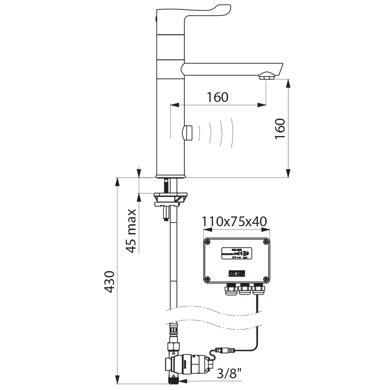 - Opbouwhoogte onderkant kraanmondstuk: 160 mm
